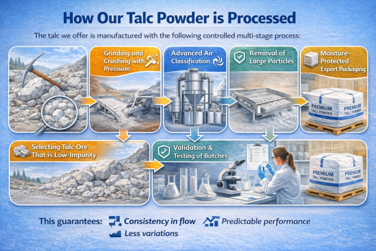 Looking for a dependable exporter of talc powder in Turkey who will provide steady quality, competitive prices, and a continuous supply? 2M Minerals is a well-established Indian producer of talc powder and exporter and supplier to Turkish industry with refined talc powder ideal for industrial applications that require high-performance.
